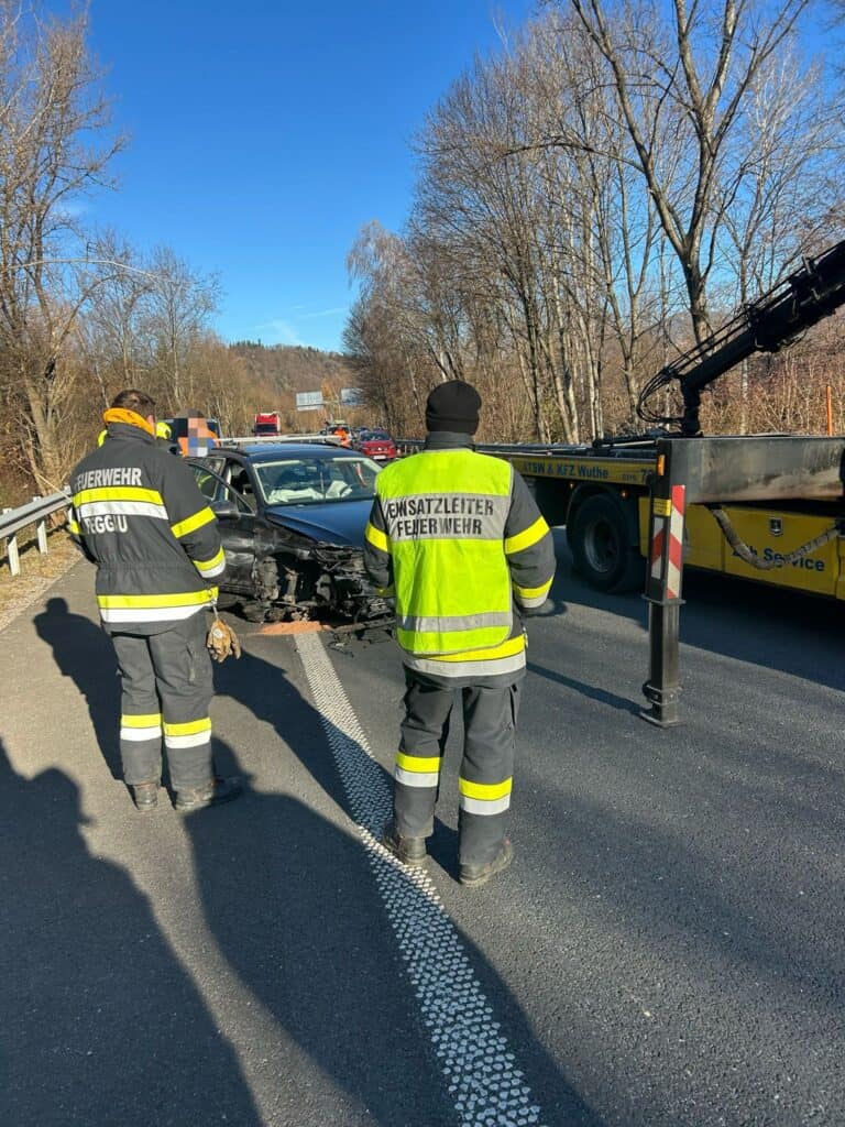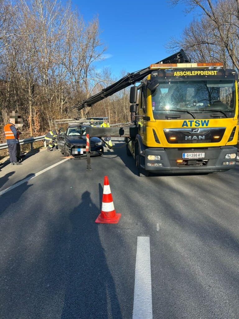 Ein PKW kollidierte aus ungeklärter Ursache mit der Leitschiene und wurde dabei schwer beschädigt. Der Lenker wurde vom Roten Kreuz sowie vom Feuerwehrarzt Dr. Lutfi erstversorgt und konnte anschließend eine Behandlung auf eigenen Wunsch ablehnen (Revers).