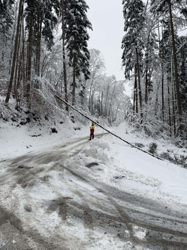 Die bereits im Einsatz stehende Feuerwehr Friesach-Wörth forderte die Feuerwehr Peggau zur Unterstützung bei einer Baumbergung in der Hochdoktersiedlung an. Kurz darauf wurde eine weitere Baumbergung in der Mittereggstraße durchgeführt. Aufgrund mehrerer hängengebliebener Fahrzeuge musste die Straße vorübergehend gesperrt werden. Nach deren Bergung konnte die Fahrbahn wieder freigegeben und die Einsatzbereitschaft der eingesetzten Kräfte hergestellt werden.