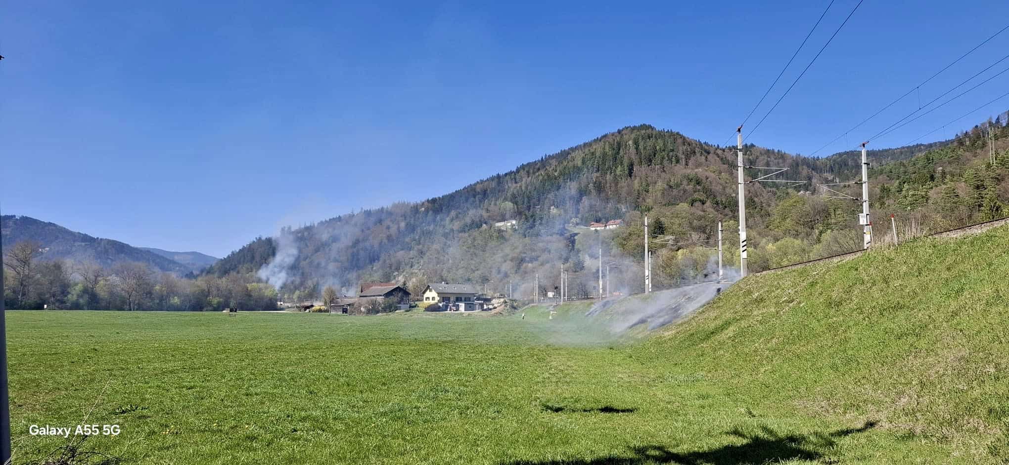 Auf der Südbahnstrecke im Bereich zwischen Peugen und Badl kam es zu mehreren Brandstellen mit starker Rauchentwicklung, die teilweise auch die Sichtverhältnisse auf der S35 Brucker Schnellstraße beeinträchtigte.